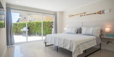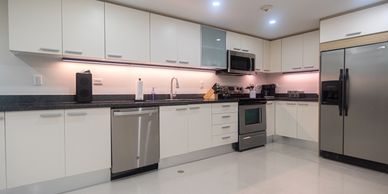 Very spacious open concept kitchen, dining and living room with new recessed lighting. Fully equip kitchen with plenty of cabinet space, dining table to accommodate 10 people. The 12-foot sliding glass doors offer lots of natural light and stunning view of the ocean. The outdoor patio has additional comfortable seating. Living room with Smart TV and both sofas are pull-out beds.